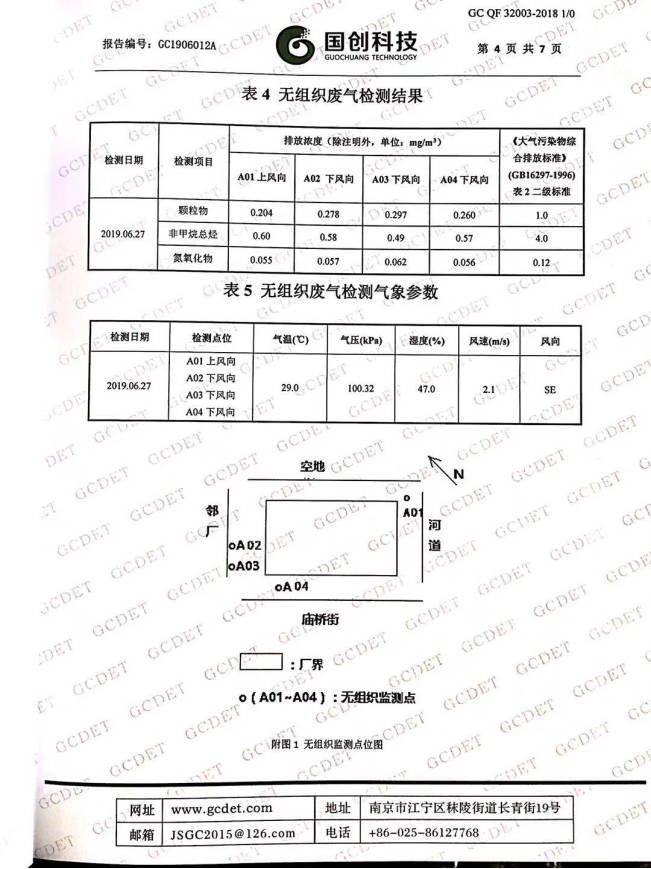2019年上半年廢水、廢氣、噪聲檢測報告
