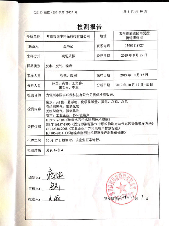 2019年下半年廢水、廢氣、噪聲檢測(cè)報(bào)告